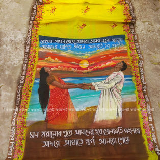 Muslin sarees are 6 yards long timeless tradition in Bangladesh, adorning women with elegance and grace. I have the privilege of enhancing their beauty through the intricate art of hand-painting. Each piece is a labor of love, requiring several hours of meticulous craftsmanship to create a masterpiece that reflects the rich cultural heritage of Bangladesh.
